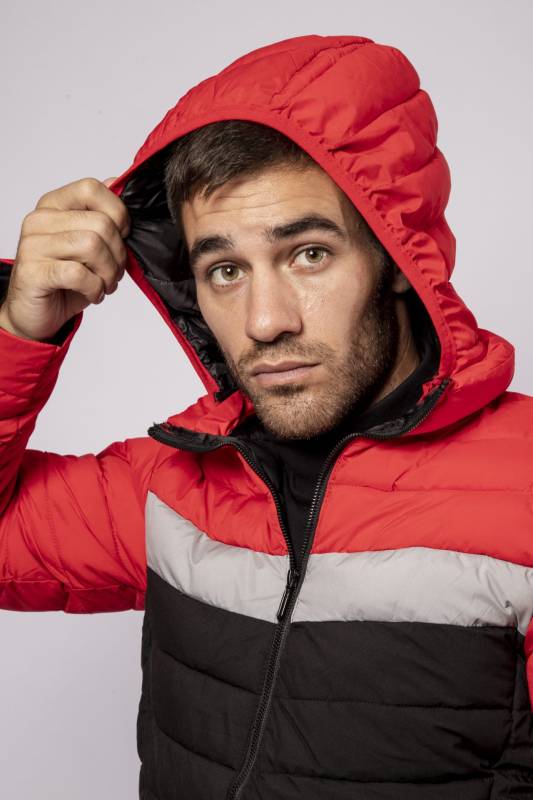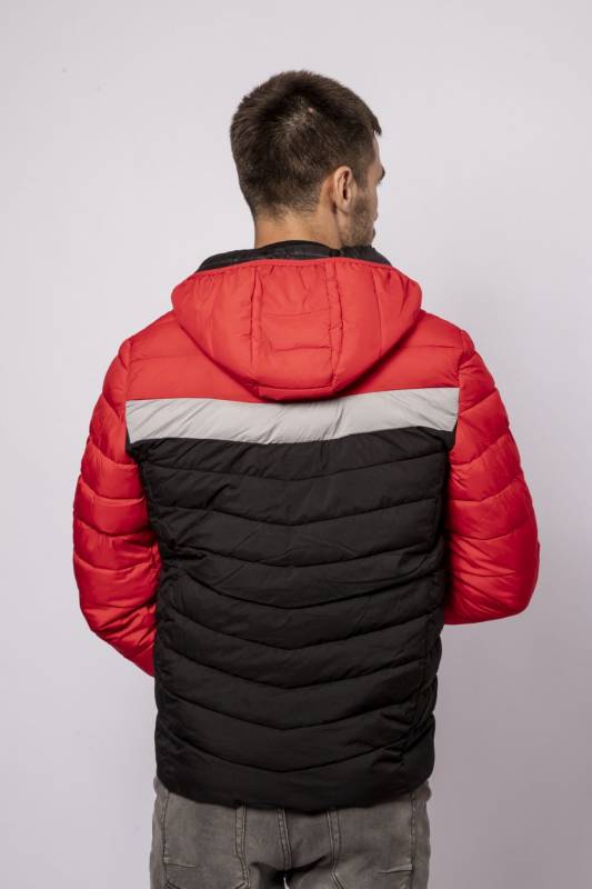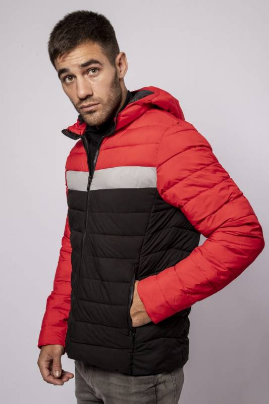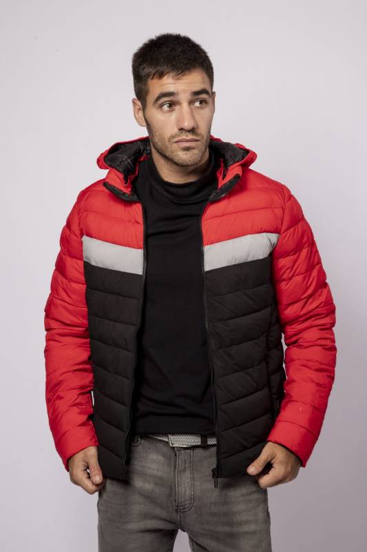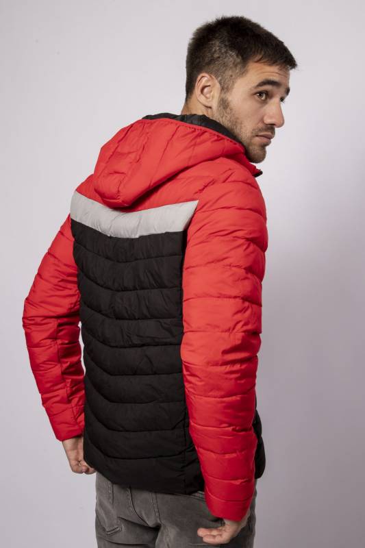 Campera de Nylon matelaseada con capucha combinada a tres colores