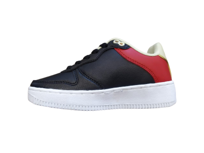 Zapatilla urbana, con recortes en capellada de cuero sintetico. Suela de goma termoplastica.