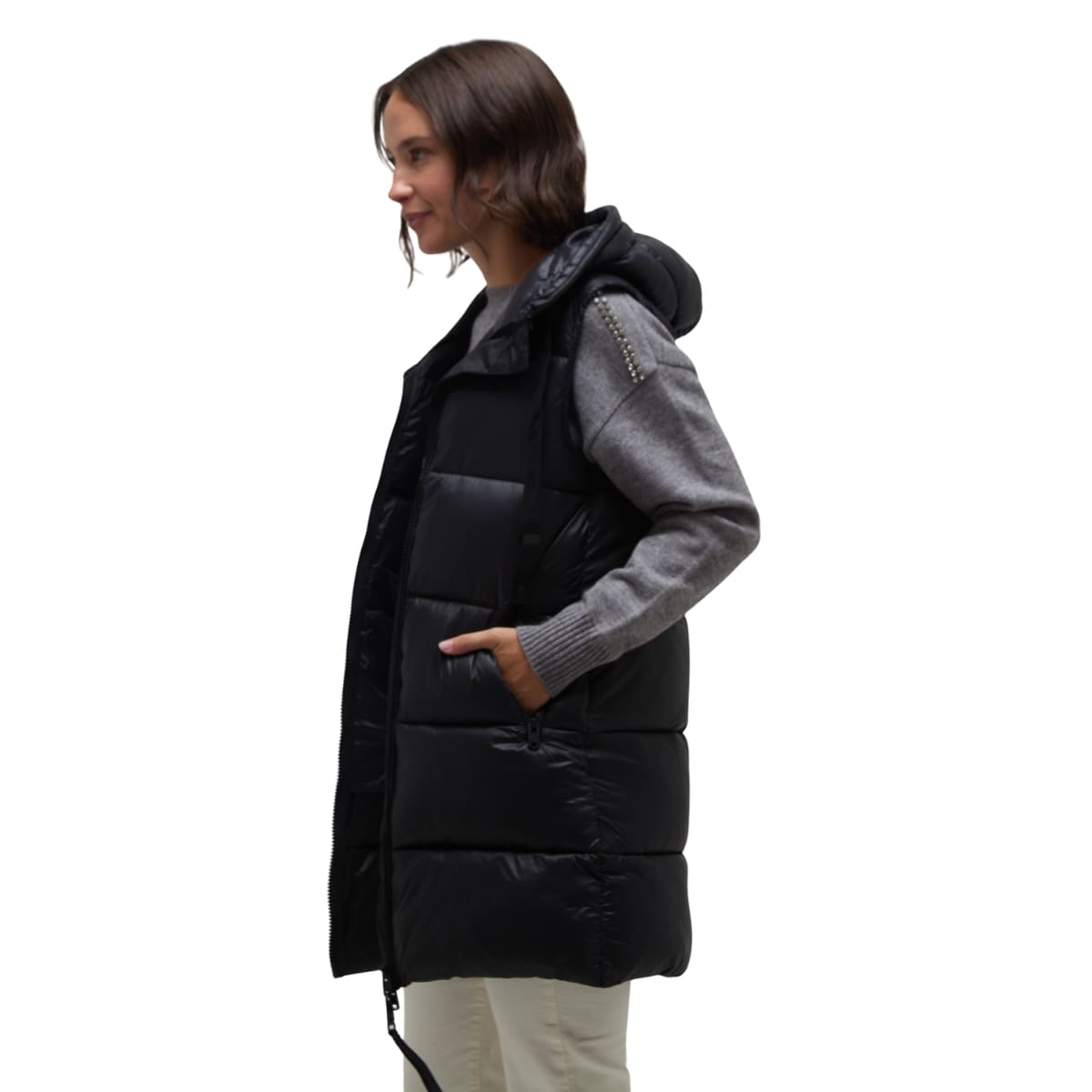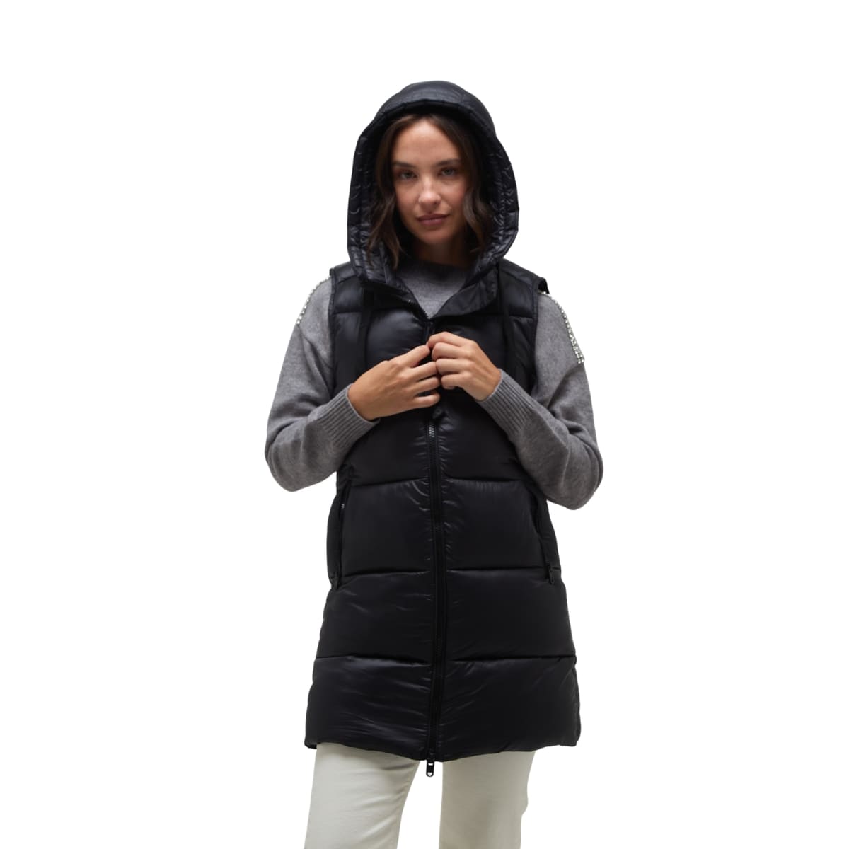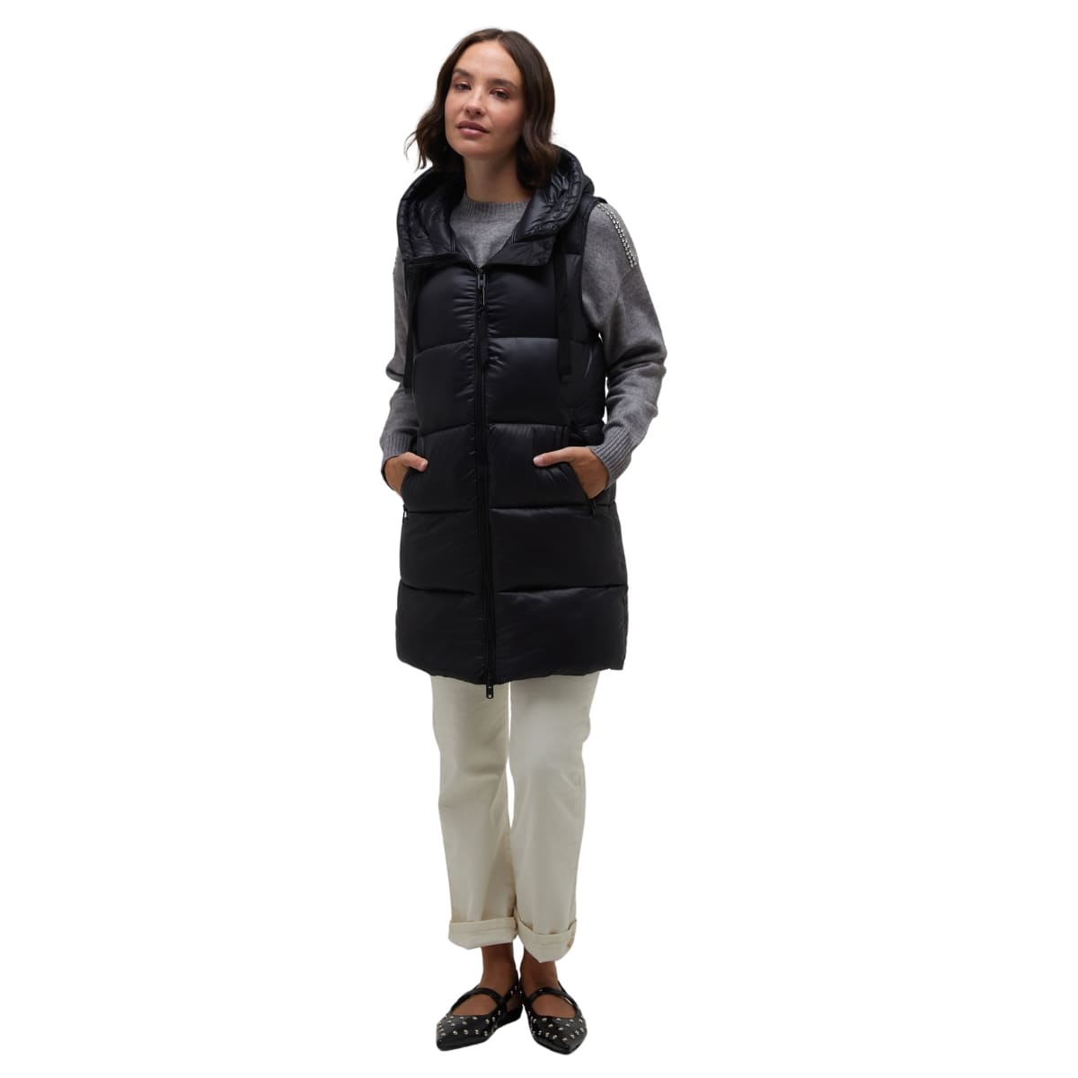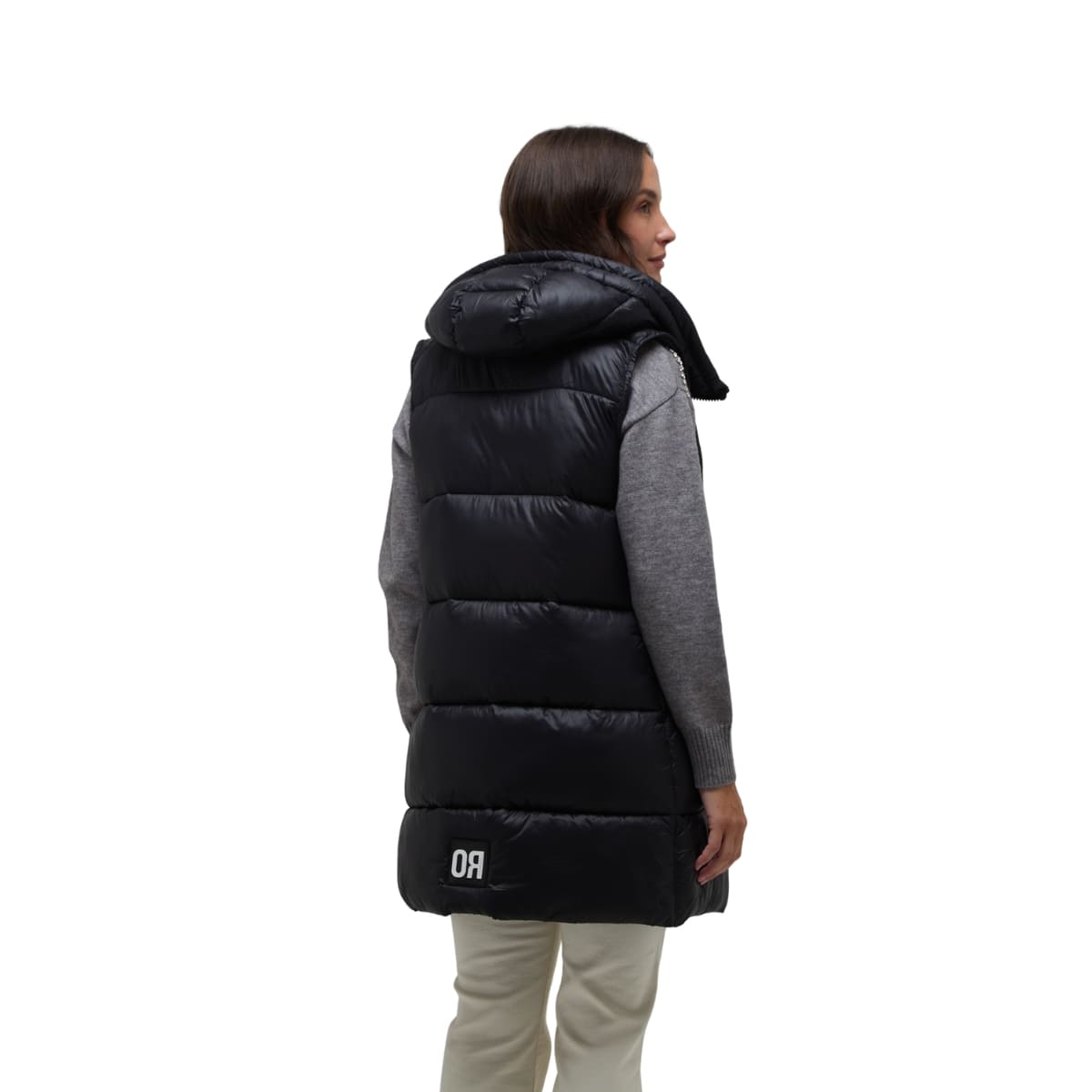 Un chaleco largo en color negro diseñado para transformar cualquier conjunto con un aire sofisticado y actual. Su corte alargado crea una silueta estilizada que favorece tanto looks formales como urbanos, convirtiéndolo en la pieza clave para renovar tu armario sin esfuerzo.